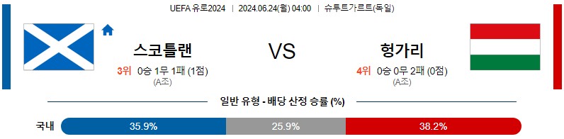 【UEFA유로2024】06월24일 스코틀랜드 vs 헝가리 UEFA유로2024 스포츠분석