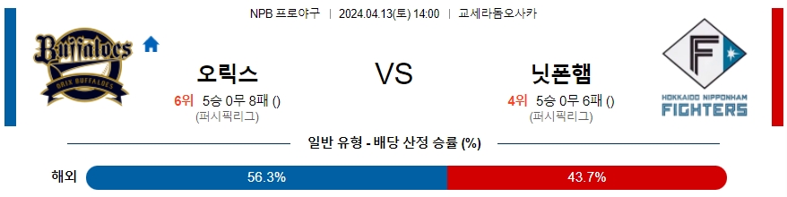 【NPB프로야구】04월13일 오릭스 vs 니혼햄 일본야구 스포츠분석